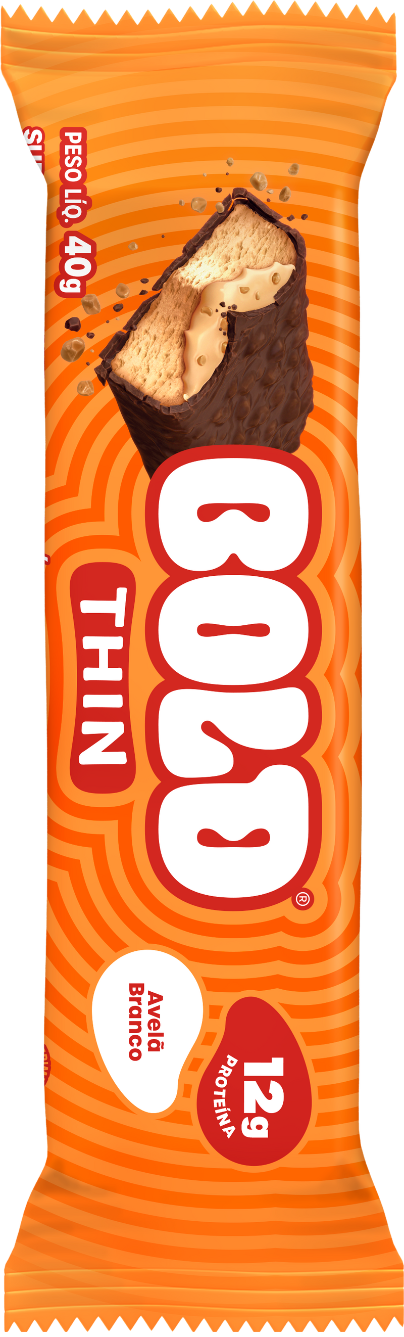CONHECERA BOLD Thin sabor Avelã Branco é a escolha perfeita para amantes de doces clássicos. Tem um recheio delicioso de leite com avelã com um toque amanteigado e uma deliciosa cobertura de chocolate ao leite.