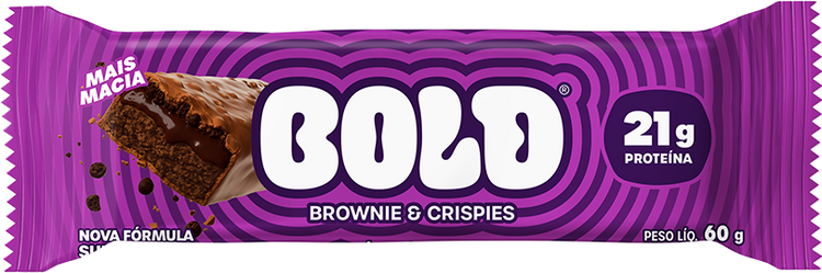 A BOLD Brownie & Crispies é um dos sabores mais chocolatudos da BOLD. Isso porque sua massa, seu caramelo e sua cobertura são feitos de chocolate (ou seja: é perfeita para ser a sua sobremesa favorita).