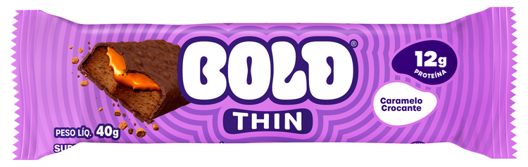 A BOLD Thin sabor Caramelo Crocante é a favorita dos amantes de caramelo! Combina o sabor irresistível do caramelo e uma textura crocante com crispies de chocolate. Uma opção proteica e saudável para o lanche pós-treino.