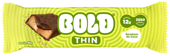 A BOLD Thin de Bombom de Coco é o sabor tropical dessa linha. Além dos pedaços de coco, ela contém um recheio incrível de caramelo, crispies proteicos e cobertura de chocolate ao leite.