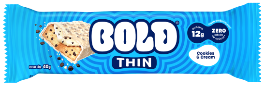 A BOLD Thin de Cookies & Cream foi feita para os amantes de chocolate branco. Ela tem um recheio de ganache branco com cobertura de chocolate e crispies proteicos (é muito sabor!).