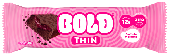 A BOLD Thin de Trufa de Morango foi criada para provar que esse doce pode sim ser saudável! A combinação perfeita de chocolate meio amargo com recheio de morango, crispies e cobertura de chocolate ao leite.