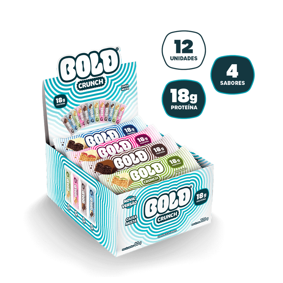 Com a correria do dia a dia, nem todas as pessoas têm tempo ou acham prático consumir ovos, leite ou whey para bater sua meta de proteína diária. Pensando nisso, a BOLD traz uma solução prática e deliciosa. Nossas barras de proteína BOLD Crunch possuem uma textura crocante e um recheio generoso que satisfazem sua vontade de comer um doce, sem a culpa dos açúcares e calorias não funcionais.