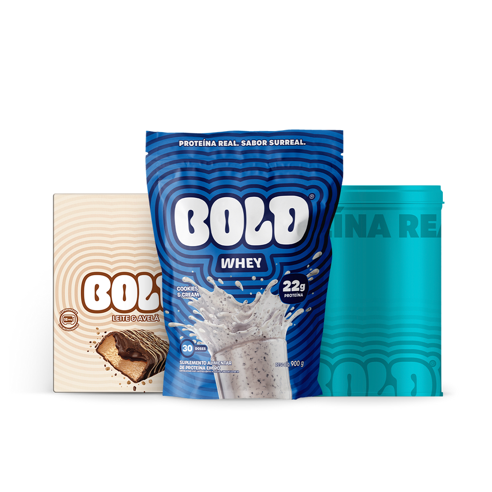 Com a rotina agitada, manter o consumo ideal de proteína nem sempre é simples. Pensando nisso, a BOLD reuniu em um único combo tudo o que você precisa para facilitar seu dia a dia: whey protein de alta qualidade, snacks proteicos deliciosos e uma lata exclusiva para levar com você.